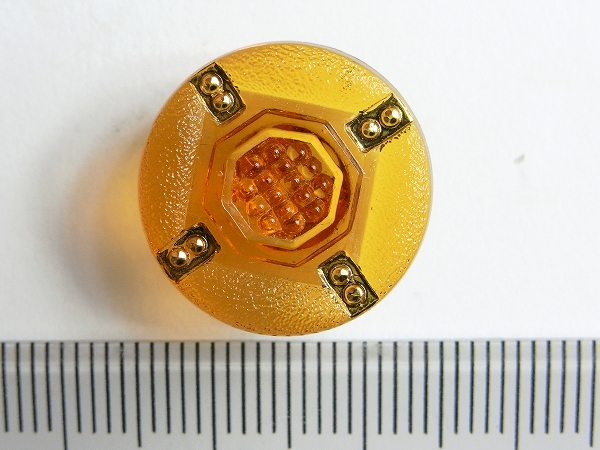 【US・ガラスボタン】ビンテージ・アンティーク (茶色-透明) 18.3mm #70010