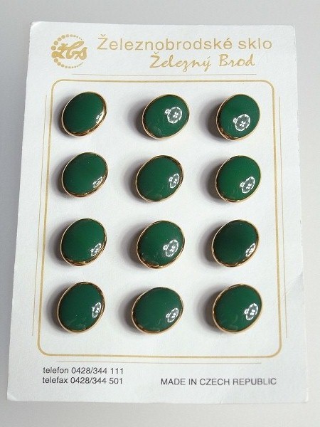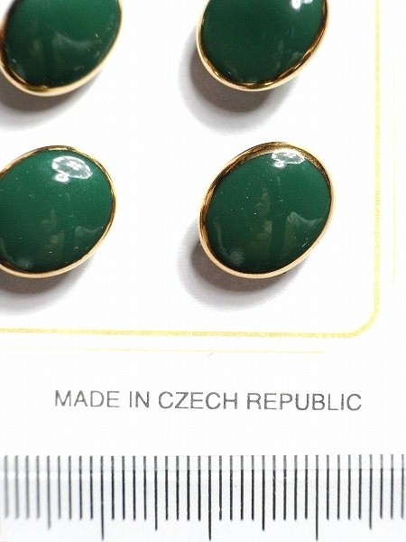 ホーム 年代物-いろいろ 【チェコガラスボタン】ビンテージ・アンティーク (台紙つき・濃い緑色のオーバル)