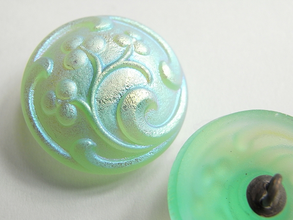 【チェコガラスボタン】ドーム型・虹色・薄い緑色・小(2.25cm)