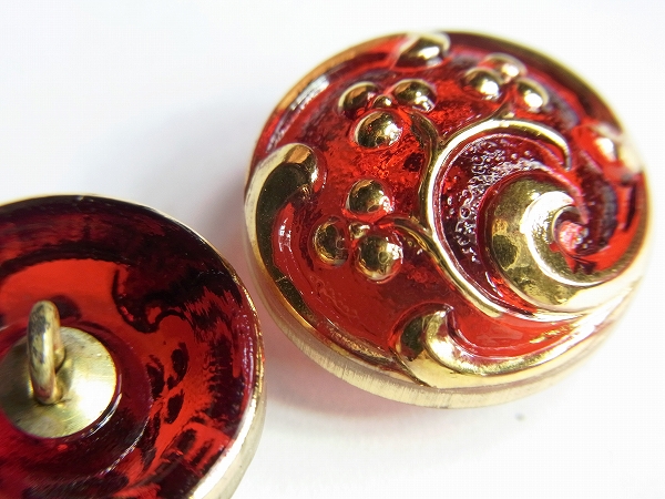 【チェコガラスボタン】ドーム型・透明赤に金・小粒(1.80cm)