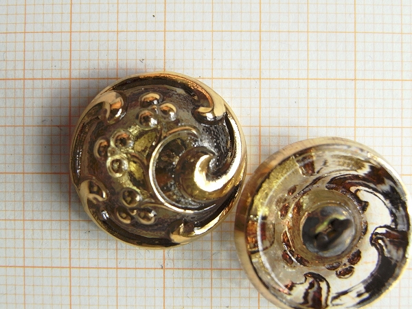 【チェコガラスボタン】ドーム型・透明極く薄い黄色に金・小粒(1.80cm)