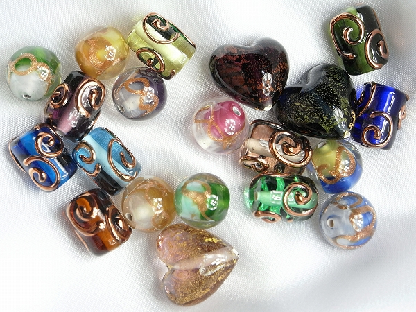 今回は、各種ガラスビーズのうち、バーナーでガラスを溶かして、手作業で製作するランプワークビーズです。