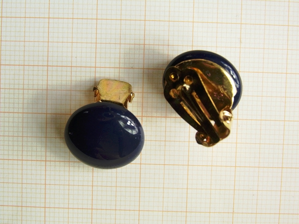 ホーム ボタン以外(ビーズ・カボション・ルースなど) 【イヤリング】Smrzovkaカボション使用(濃い紺色) OthER0050016