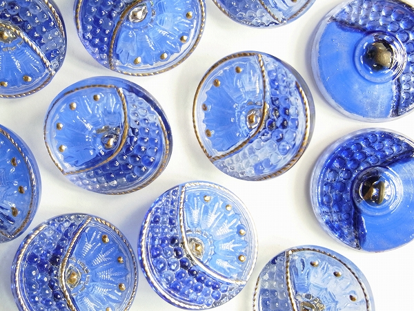 【チェコガラスボタン】フラワー・バスケット・青と紺と金・小(2.25cm)