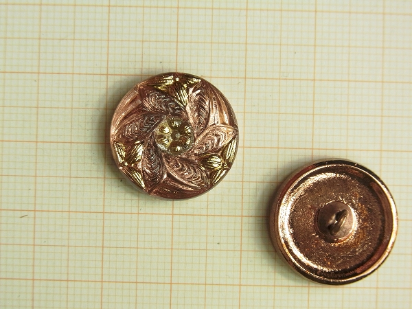 【チェコガラスボタン】模様(六枚の葉の輪)・銅色に金・小粒(1.80cm)