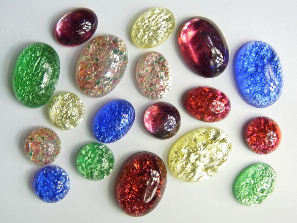 ボタンの足のない、裏側が平たんなフラットバックカボションです。
