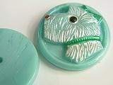 【チェコ・ガラスカボション】犬・ターコイズに緑・小(2.25cm)