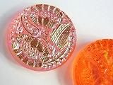 ベースガラスは透明な朱色で、虹色コーティングが施されています。