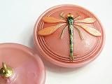 ホーム 蜻蛉 【チェコガラスボタン】蜻蛉・ピンクに緑と薄いオレンジ・大(3.15cm)
