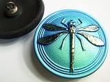 【チェコガラスボタン】蜻蛉・艶消し青メタリック・金翅・大(3.15cm)