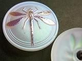 【チェコガラスボタン】蜻蛉・艶消し無色虹色・金翅・大(3.15cm)