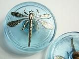 【チェコガラスボタン】蜻蛉・透明青・金翅・大(3.15cm)