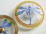 ベースガラスは無色透明で、青緑白赤などで蜻蛉を描き、円周を金で縁取っています。