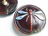 【チェコガラスボタン】蜻蛉・エナメル彩色・赤茶色・青の翅に赤の胴体・大(3.15cm)