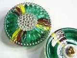 【チェコガラスボタン】矢車菊・無色透明に緑茶黄銀・中(2.70cm)
