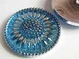 ベースガラスは青で、銀で花芯と花弁を描いて、周辺を銀で飾っています。