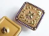 【チェコガラスボタン】特殊な形・正方形(ベージュ色に金と薄紫)・小粒(1辺1.80cm)