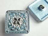 【チェコガラスボタン】特殊な形・正方形(ターコイズブルーと銀)・小粒(1辺1.80cm)