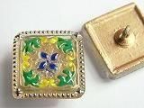 【チェコガラスボタン】特殊な形・正方形(緑と黄色と青)・小粒(一辺1.80cm)