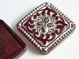 【チェコガラス・カボション】特殊な形・正方形(赤に銀)・小粒(1辺1.80cm)