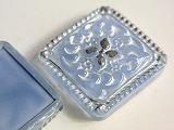 【チェコガラス・カボション】特殊な形・正方形(水色に白と銀)・小粒(1辺1.80cm)