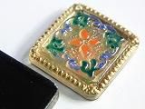 【チェコガラス・カボション】特殊な形・正方形(金地に赤緑)・小粒(1辺1.80cm)