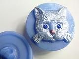 ホーム 動物いろいろ 【チェコガラスボタン】猫・空色に顔-白、耳-白、髭-白、目-青、鼻-ピンク・中(2.70cm)
