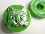 【チェコガラスボタン】猫・緑に顔-白、耳-白、髭-白、目-緑、鼻-赤・中(2.70cm)