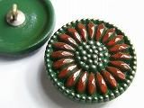 【チェコガラスボタン】矢車菊・緑に赤銀・小(2.25cm)