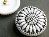 【チェコガラスボタン】矢車菊・白に黒・小(2.25cm)