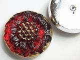 【チェコガラス・カボション】丸い菊・赤に金・小粒(1.80cm)