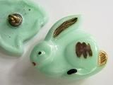 【チェコガラスボタン】ウサギ(ミント色に耳茶、しっぽ金)・中(2.69x2.19cm)