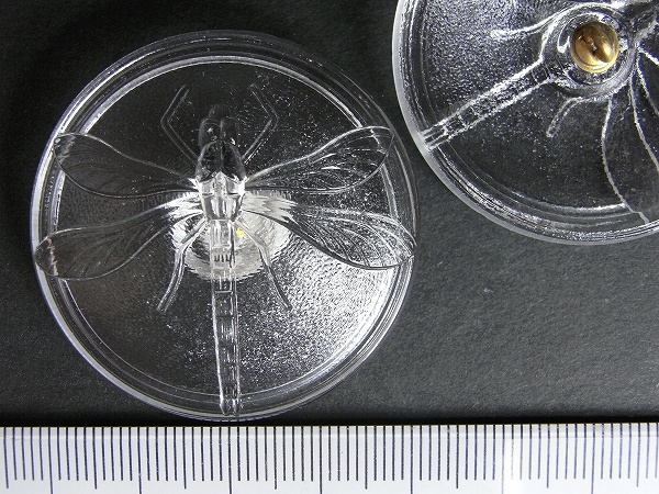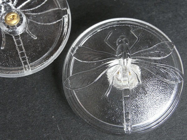 【チェコガラスボタン】蜻蛉・透明・無垢・超特大(4.05cm)