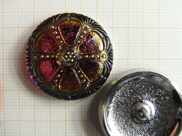 【チェコガラスボタン】模様(ゴージャス)・車輪・赤紫・中(2.70cm)